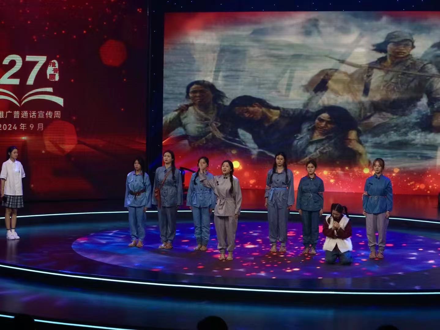 “八女投江的英雄事迹令我们每个人为之动容,今天学院学子将此故事改编成情景诗歌剧,用我们的方式把当年八女投江的精神进行演绎。为拉近观众与烈士的距离,我们采用了一名现代学生与八名女烈士隔空对话的形式,通过当代年轻人的发问”为何要投入那冰冷的河水”,增强感染力,带领新时代学子在学习普通话的热情中走进那个战火纷飞的年代,感受革命烈士对我们的精神洗礼。”指导老师成容容说道。