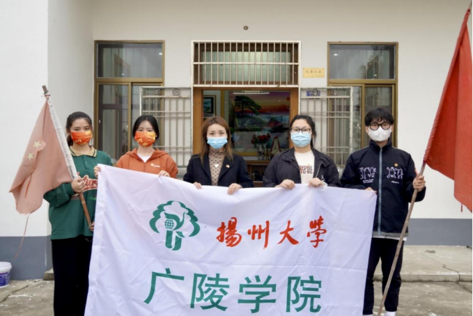 “红色足迹”寻访小组成员在周金兰老先生家门前合影留念