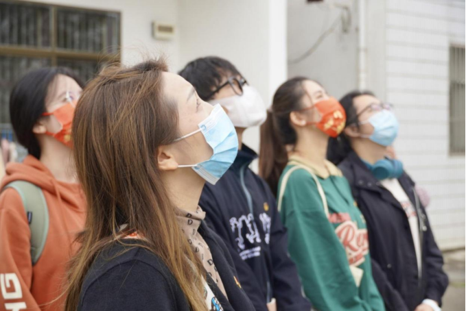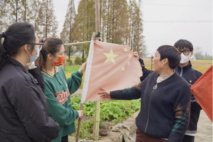 “红色足迹”寻访小组成员庄严观看高美进行升旗仪式
