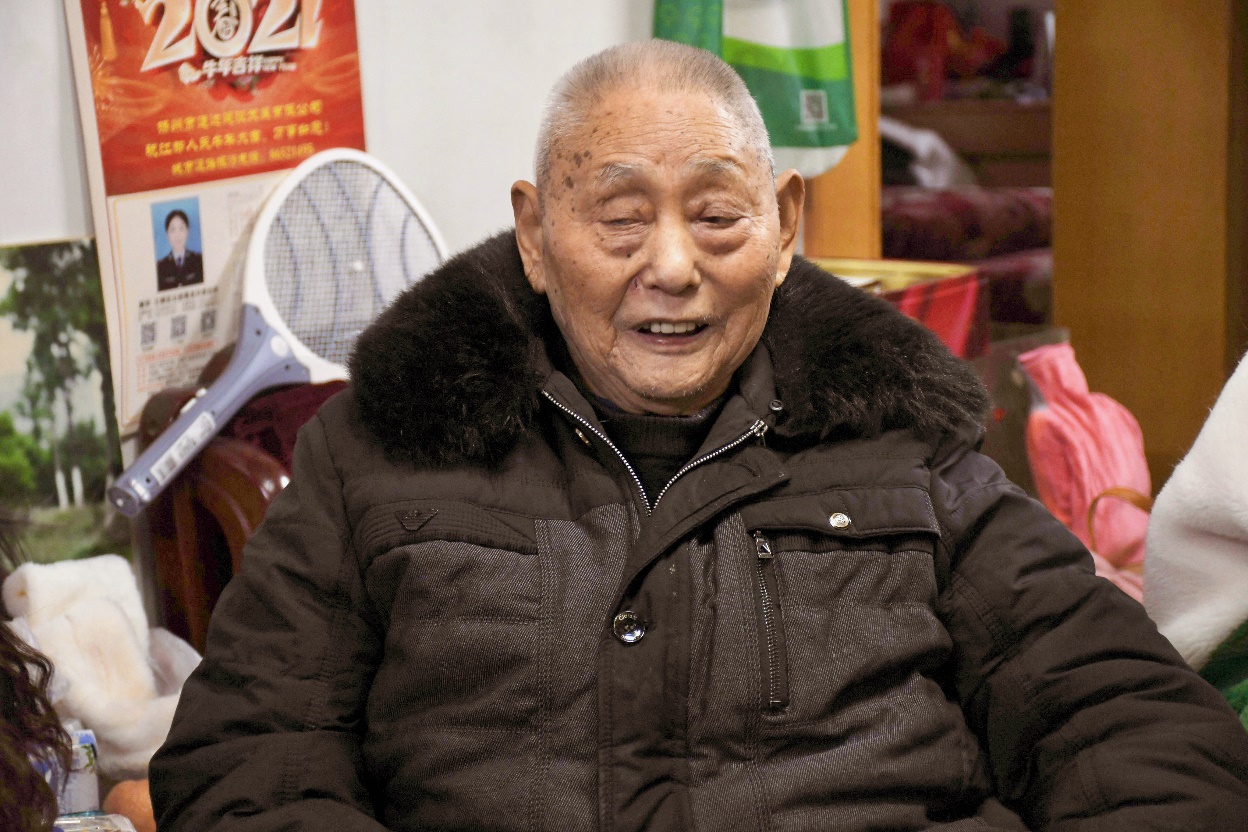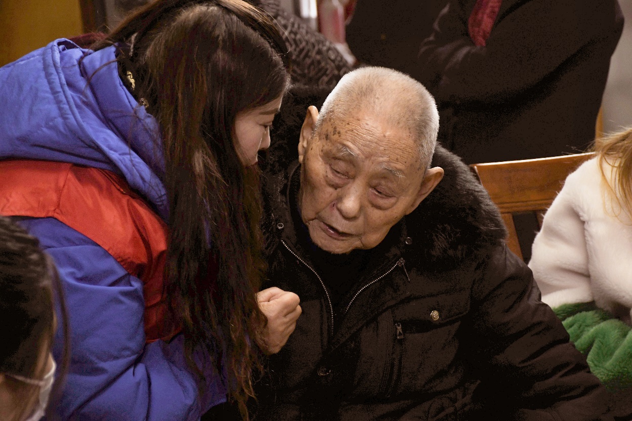 志愿者与抗战老兵马金贵交谈