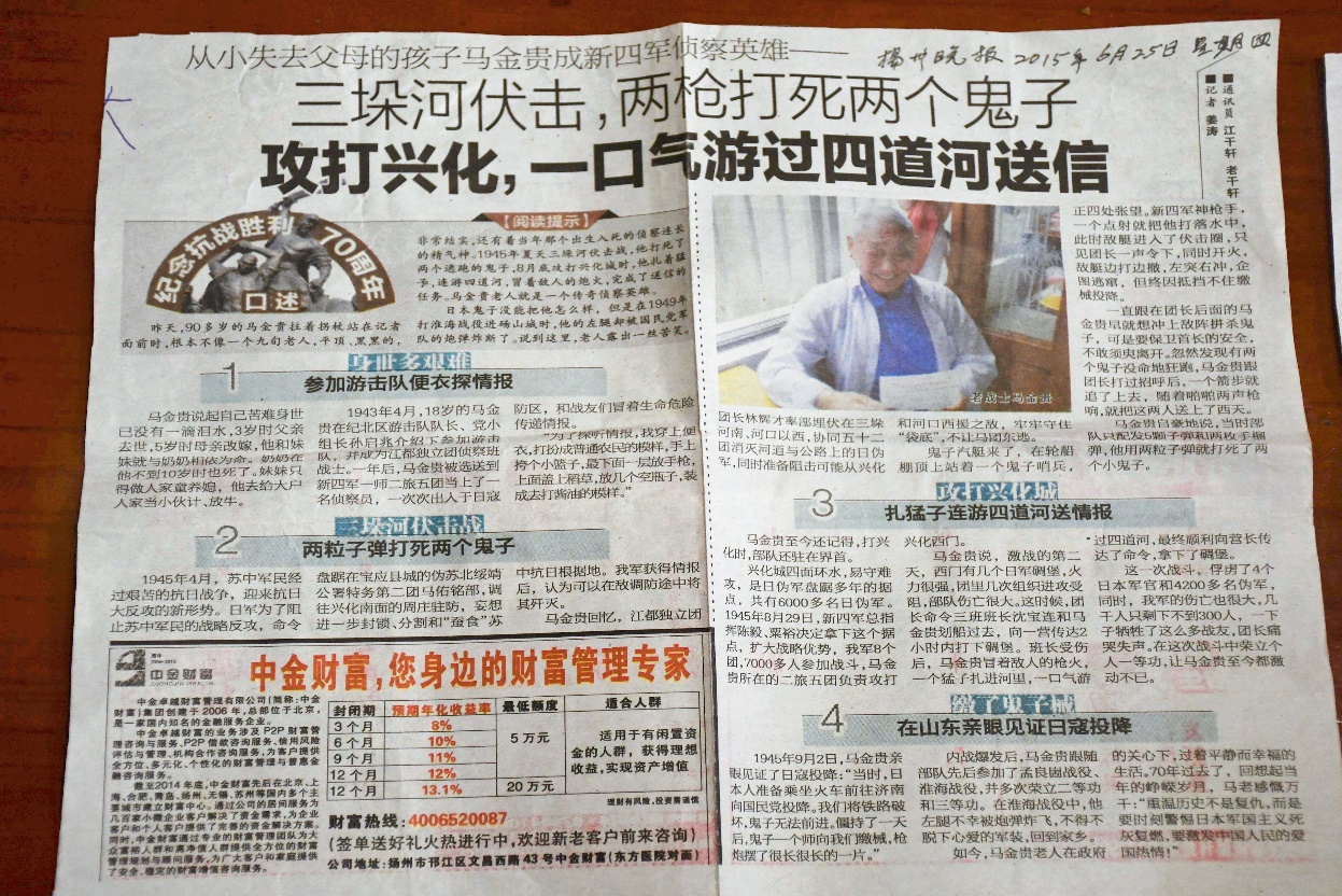 抗战老兵马金贵英勇事迹的报道