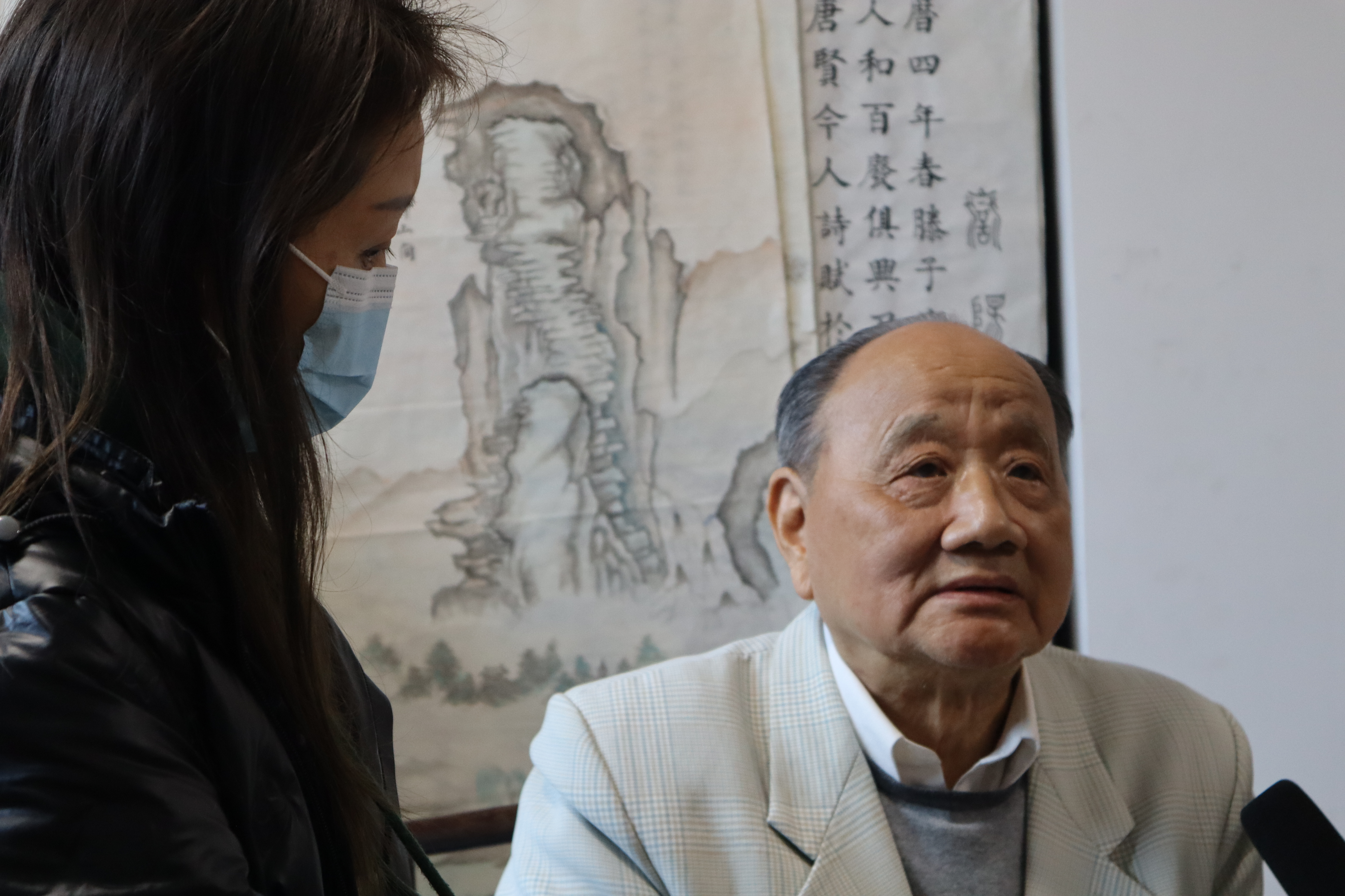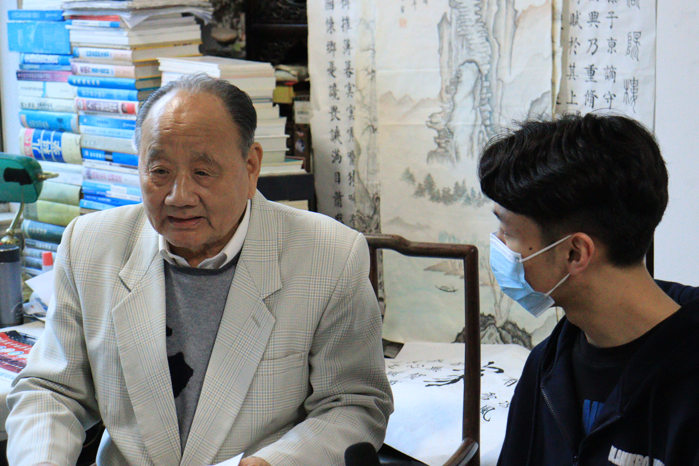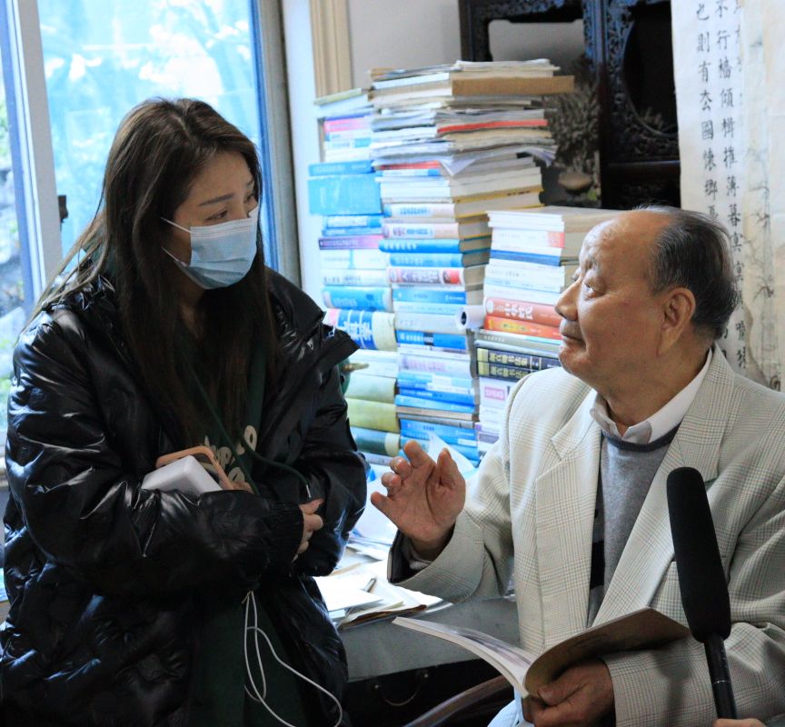 成容容老师认真聆听爷爷讲述昔日往事
