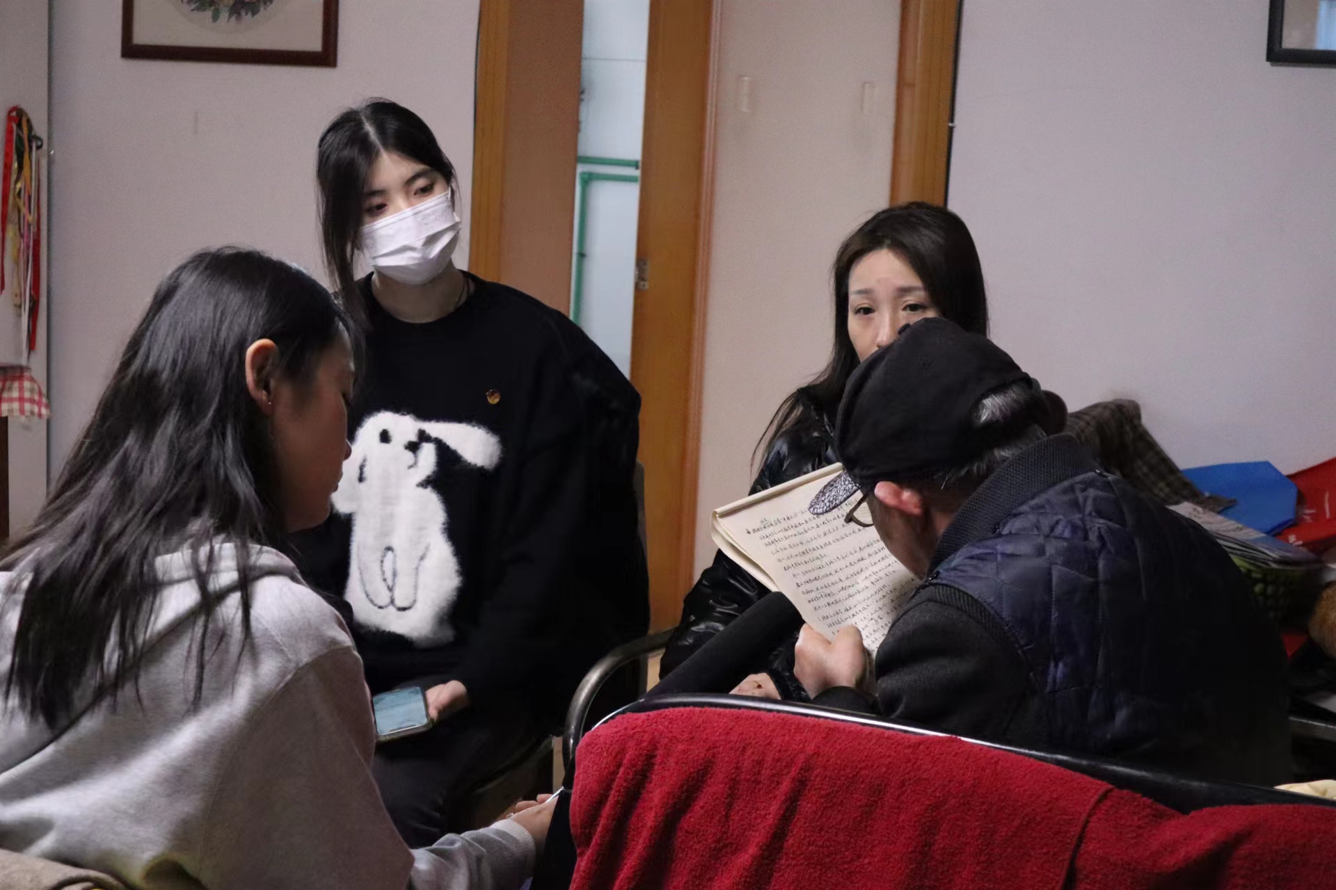 红色团队在聆听成积善老人的教诲