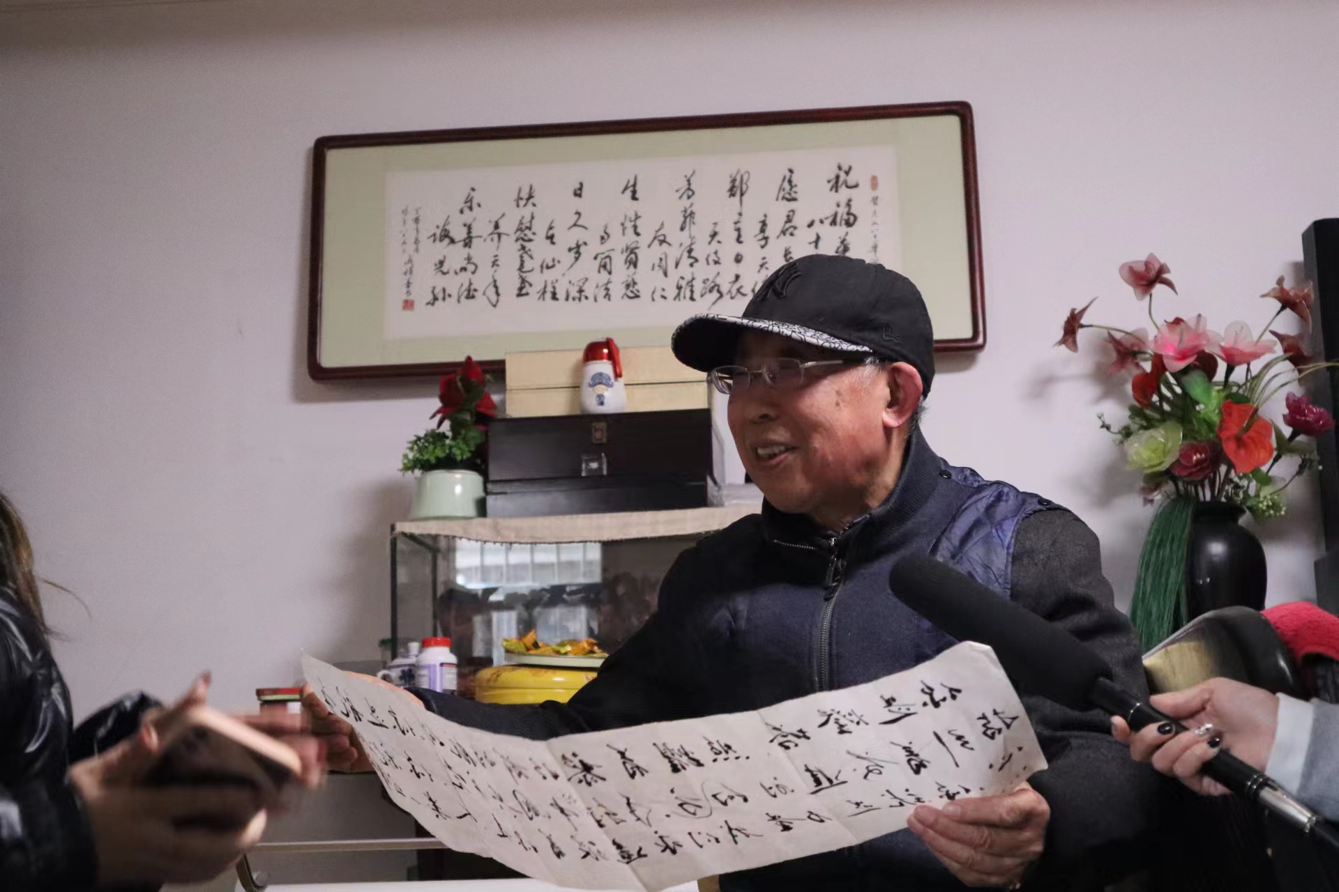 成积善老人在接受采访
