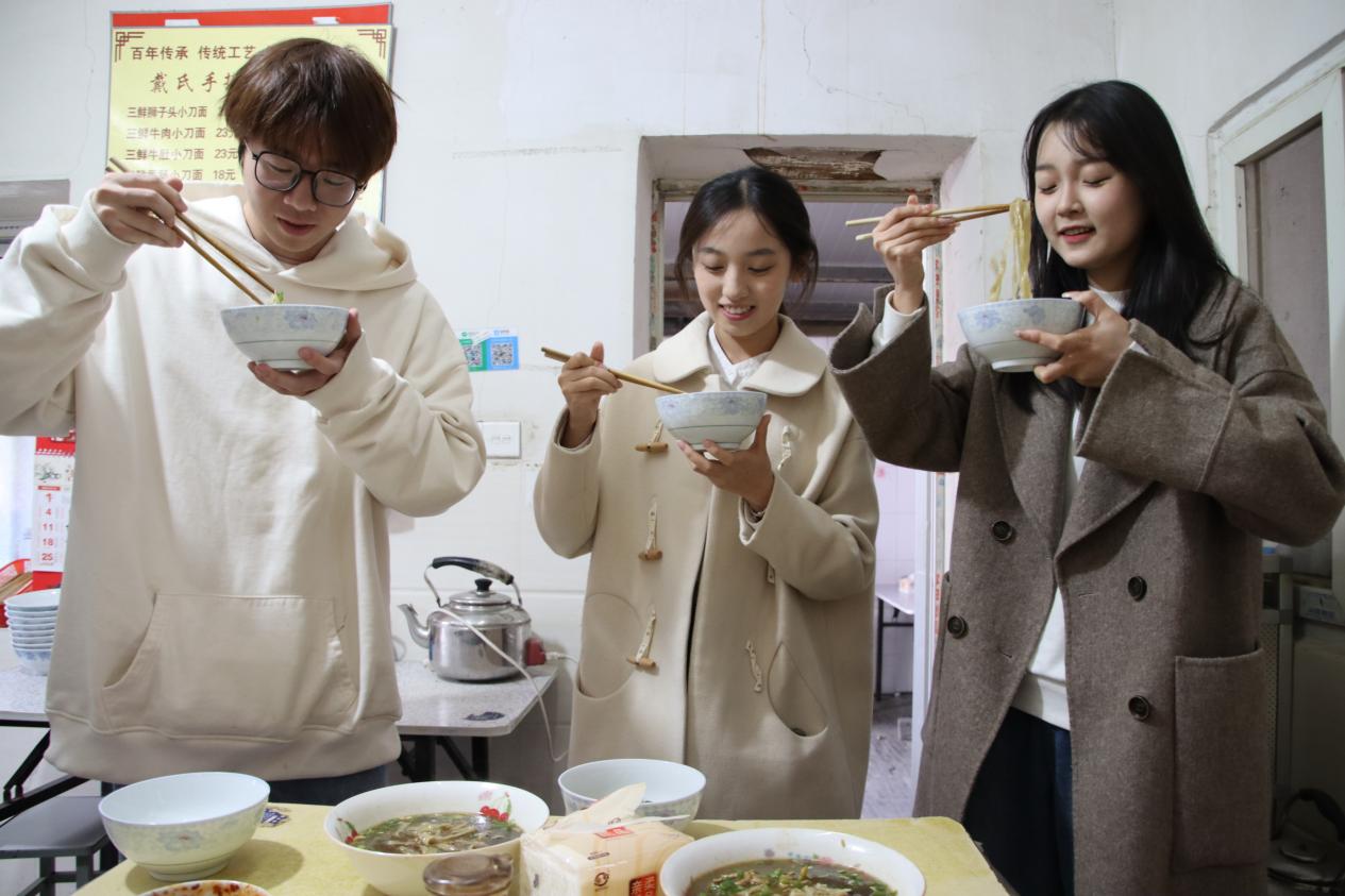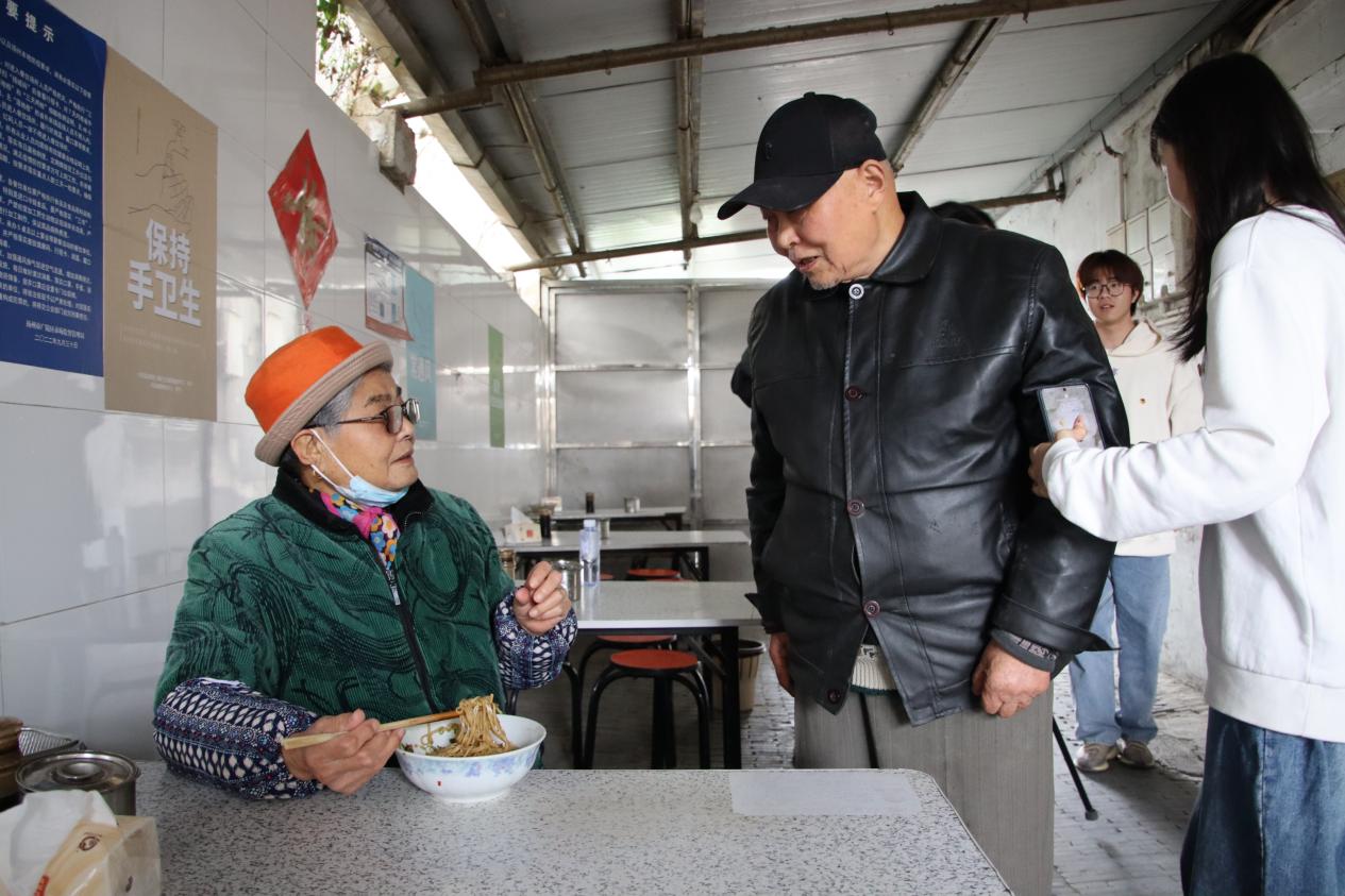 百姓到戴师傅面馆就餐并与戴世传老人亲切交谈