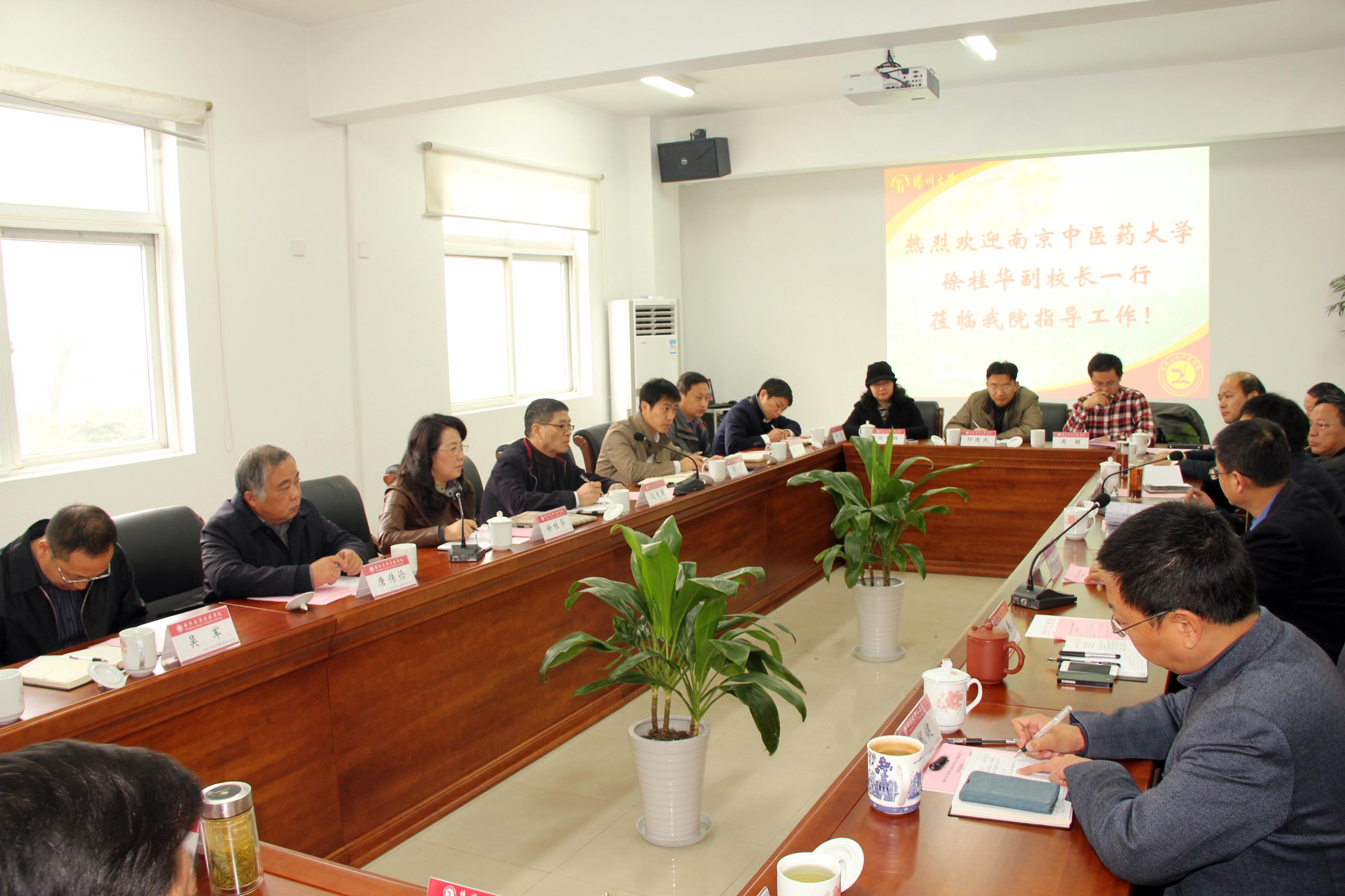 11月25日上午,南京中医药大学党委常委徐桂华副校长率领翰林学院沈大庆院长、唐传俭书记以及各部门主要负责人等一行来我院调研,我校党委常委胡效亚副校长、全体院领导、相关部门负责人等出席并进行了深入的交流。