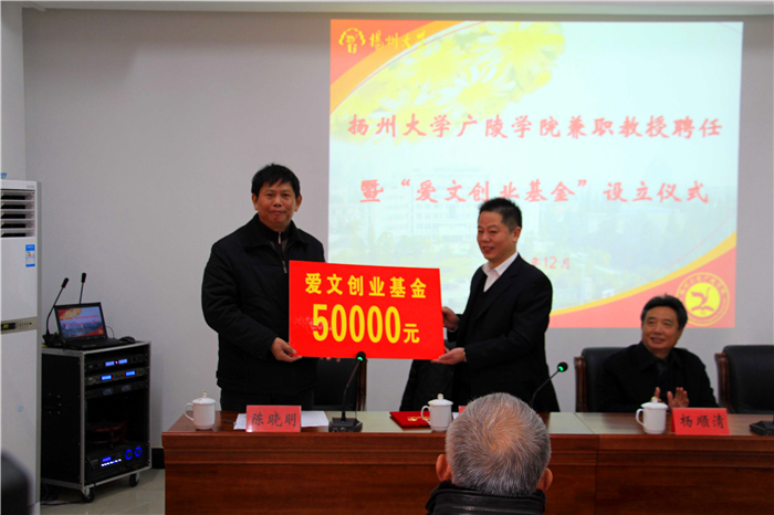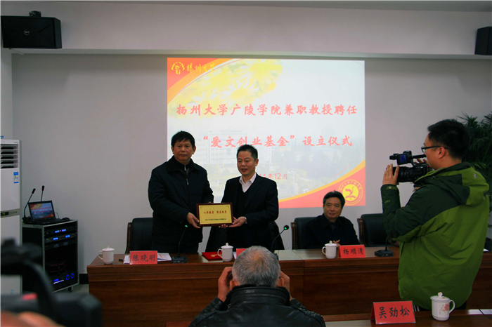 聘任仪式后,举行了江苏爱文装饰工程有限公司在我院设立“爱文创业基金”的仪式。“爱文创业基金”的设立旨在增强校企合作,通过资助有良好创业前景的大学生项目,扎实做好创业服务工作,加强创业宣传教育,鼓励广大学生自主创业,提升就业质量。
