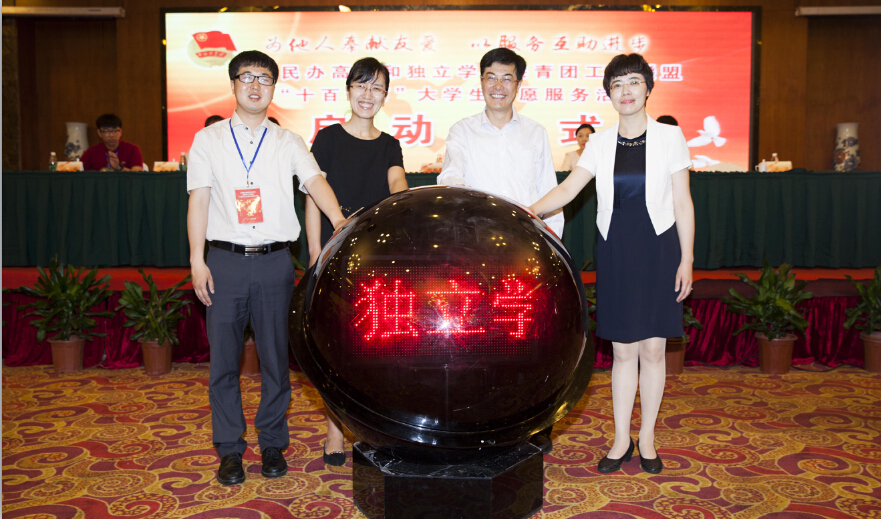 志愿服务活动需要我们身体力行,在互进互助中切实传递正能量,让我们共同去看一个更新更大更美的世界。最后,任博远同志、陈文娟同志、叶柏森同志与姜涛同志一起按动水晶球,共同开启了本次“十百千万”志愿服务活动。至此,全国民办高校和独立学院共青团工作联盟“十百千万”志愿服务活动启动仪式圆满结束。