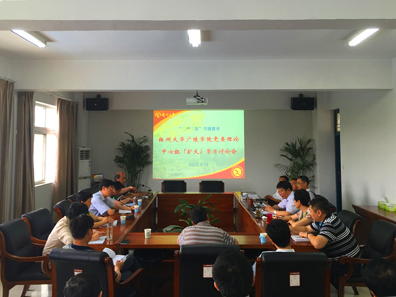 2015年6月12日下午,学院在路南办公楼419会议室进行党委理论中心组学习。邀请扬州大学党委副书记、副校长叶柏森同志、校宣传部薛小平部长参加了理论中心组学习讨论会。