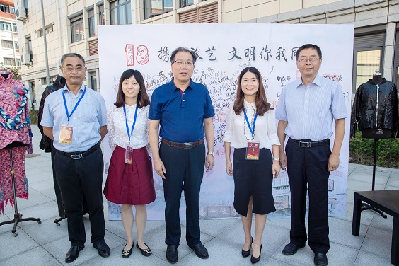 在迎新现场,姚冠新饶有兴致地观摩了极具专业特色的健康义诊咨询台、服装皮具设计作品展,并在“18携手旅艺 文明你我同行”的签名墙上签名留念。