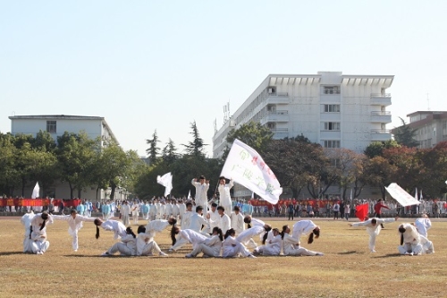 在闭幕式当天进行的第十四届二十四式简化太极拳比赛中,我院参赛方阵身穿白色服装登场,一招一式间张弛有度、刚柔并济,潇洒飘逸的身姿获得了在场观众的一致好评,并最终荣获一等奖。