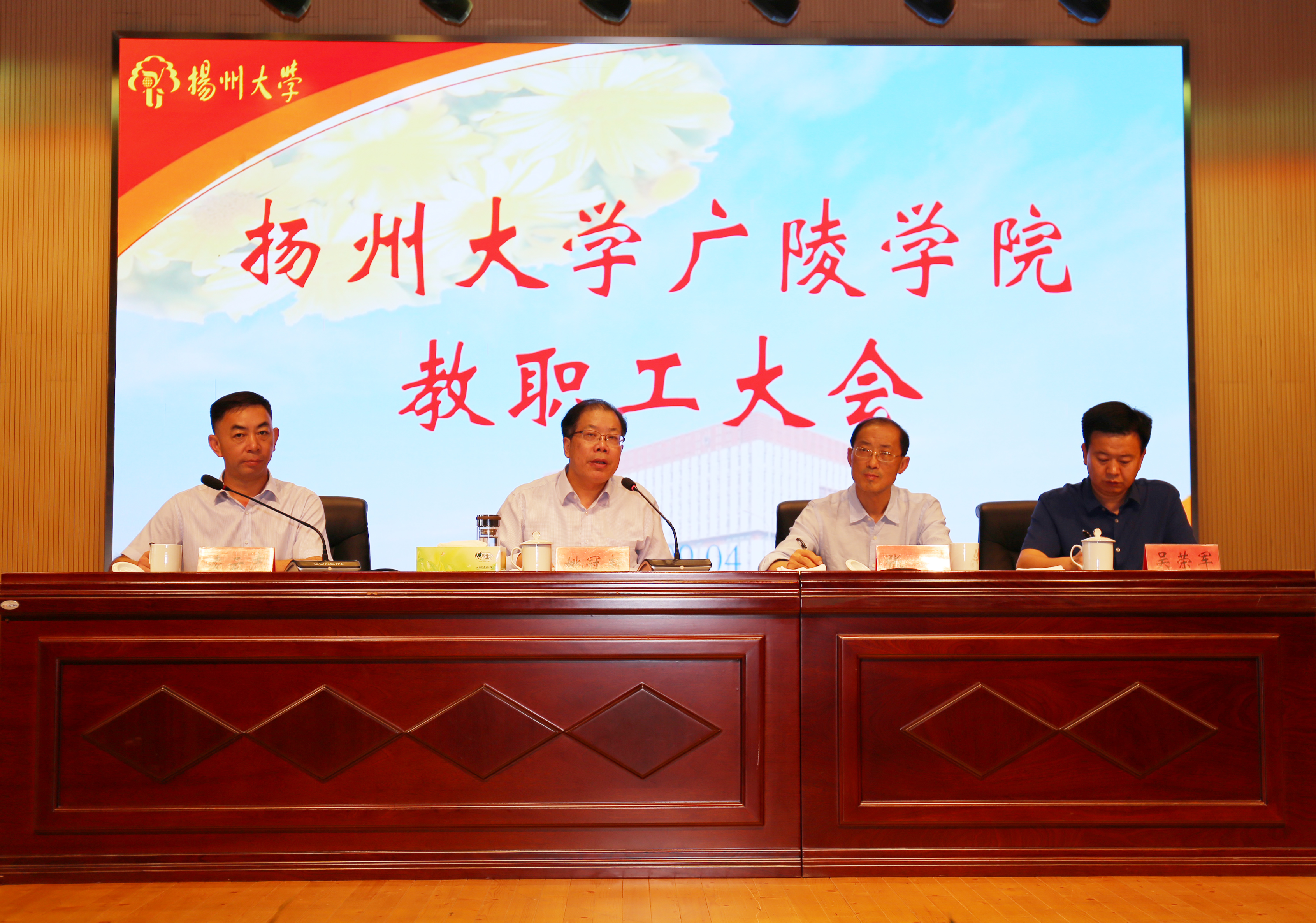 张清在工作报告中总结了学院上半年工作情况,对下半年及今后一个阶段的工作进行了部署。他要求全院教职工进一步统一思想,将“团结、奋进、开放、包容”的广陵文化发扬光大,树立起“把广陵学院建成学生有自豪感、教师有尊严感、管理人员有成就感的高水平应用型学院”的美好愿景,牢记“以生为本”“以本为本”的初心,着力打造教师和管理人员两支队伍,努力践行“学生成长、员工成长、学院成长”三位一体的中心任务。他希望广大教职工以更加强烈的责任感和使命感,以更加优良的作风和扎实的举措,努力奉献,共同成长,以优异的成绩迎接中华人民共和国成立70周年华诞。