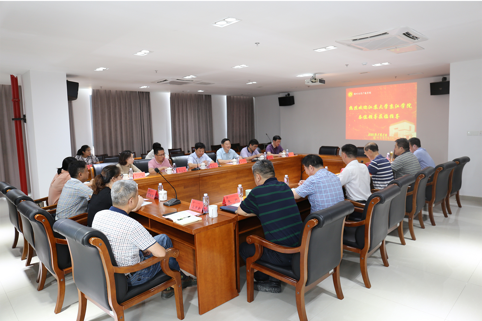 2020年8月5日上午,江苏大学京江学院院长赵喜仓、党委书记尹志国一行访问我院,就学院发展规划编制等方面的工作与我院领导展开座谈交流。我院院长张清、党委书记凌云志等院领导出席交流会。