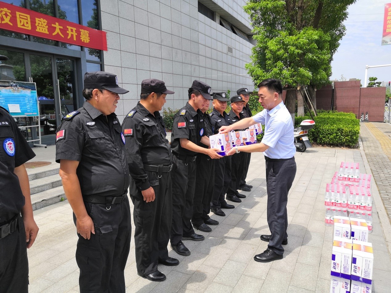 凌云志先后来到学院各出入口和宿舍区警务点,看望和慰问烈日下正在执勤的安保人员,提醒大家高温季节要做好自我防护工作,预防高温中暑,提醒相关部门多给予奋战在一线的工作人员关心和照顾,合理安排工作人员轮班,确保一线员工身体健康。