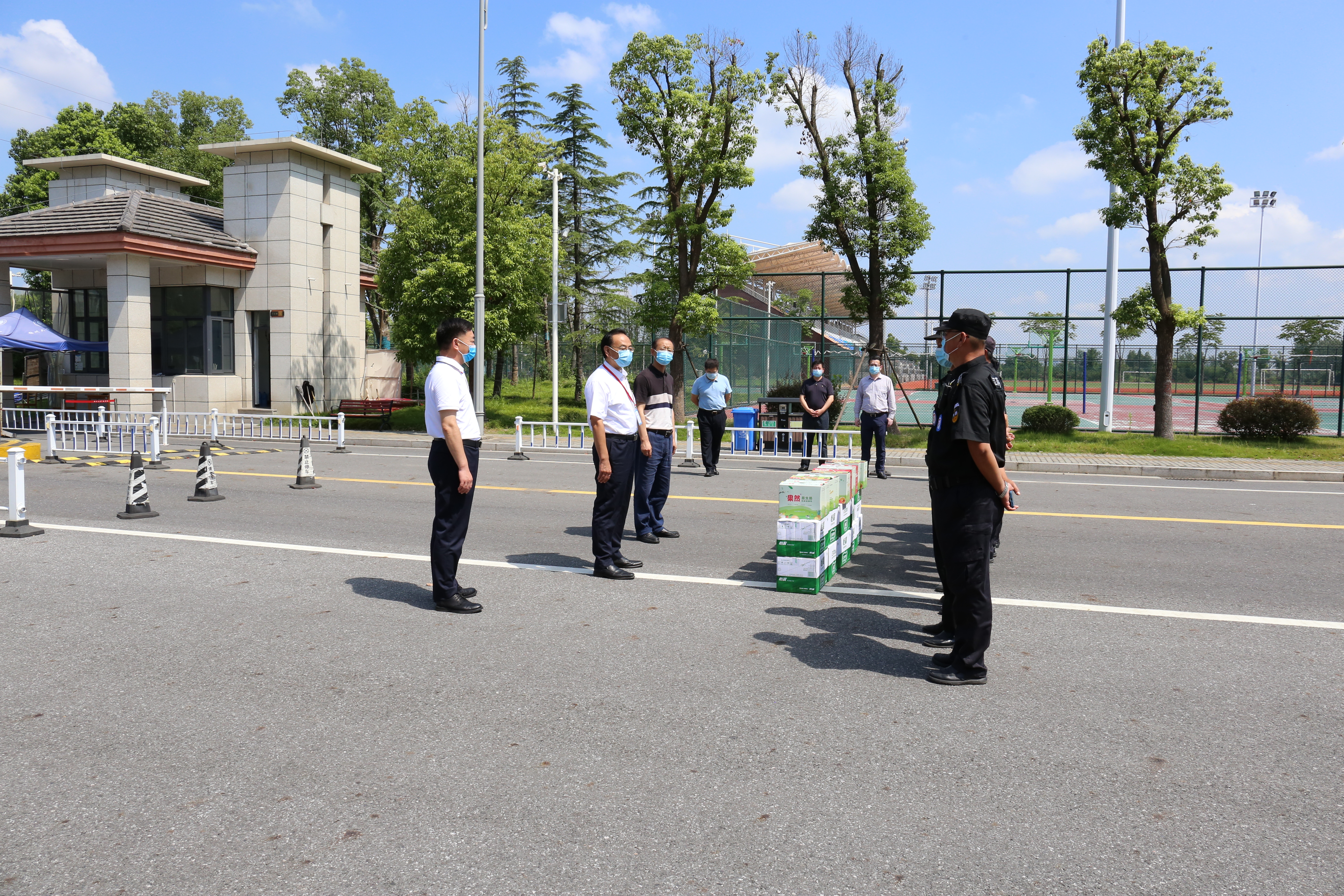 俞校长先后来到学院西大门、教学楼等地点,看望和慰问正在执勤的安保人员和工作人员,感谢防控一线工作人员的坚持不懈、默默坚守。他强调,目前疫情防控形势严峻复杂,要严格按照要求实行校园封闭式管理,把好入口关,提醒工作人员做好自我防护,合理安排轮班,确保防控一线工作人员身体健康。