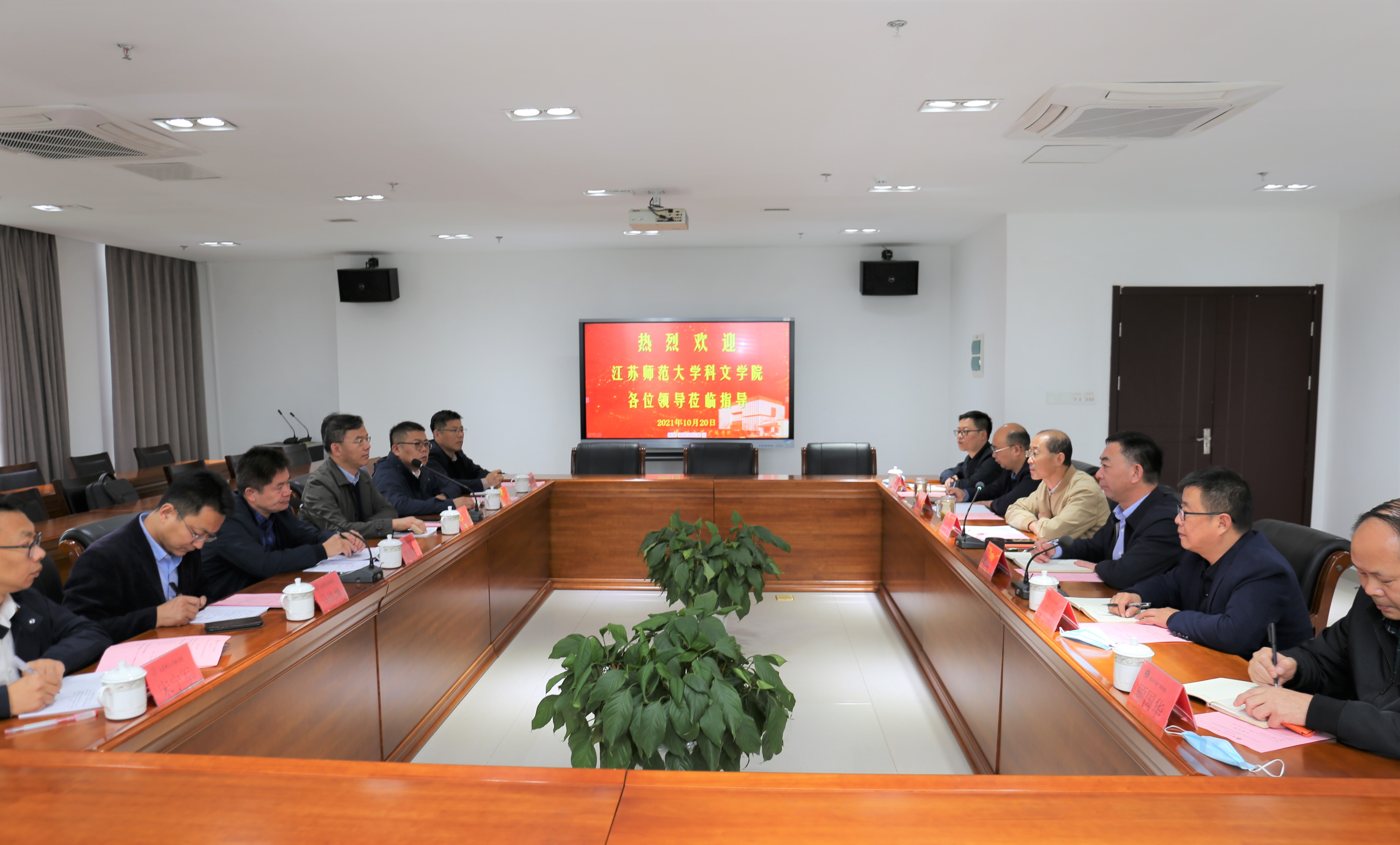 10月20日,江苏师范大学科文学院院长胡福年、党委书记张立荣一行访问我院,我院院长张清、党委书记凌云志等领导参加调研交流会。