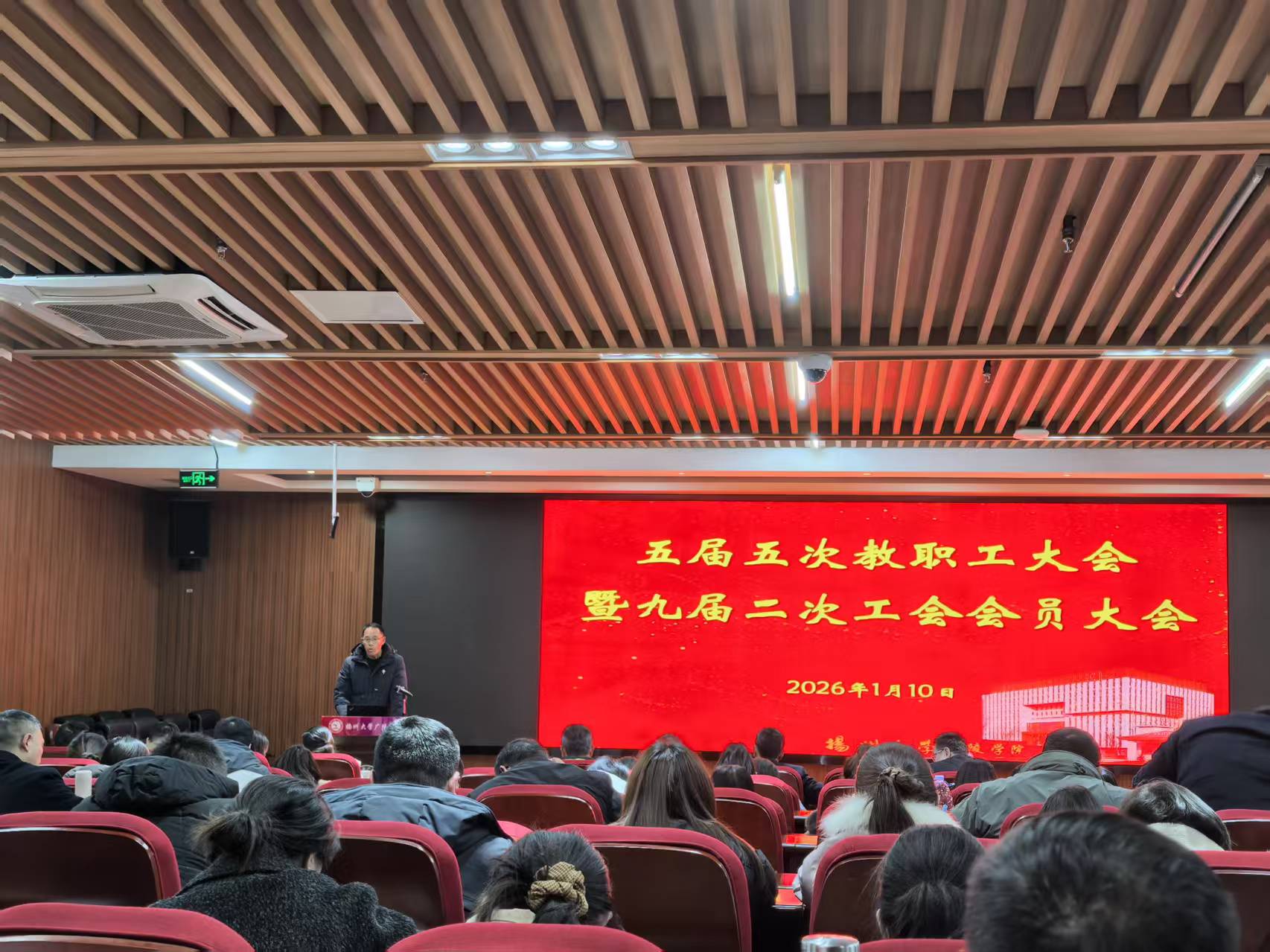 召开五届五次教职工大会暨九届二次工会会员大会。全体教职工出席会议。