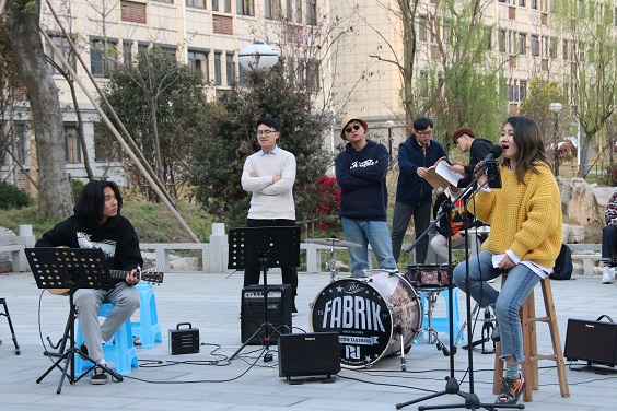 在前一天晚上的活动现场,小白音乐社和粤语协会的成员们便吸引了不少听众,大一的同学们在晚自习下课后纷纷驻足聆听,尤其是粤语协会的《风继续吹》和小白音乐社的《忘记拥抱》获得了现场的一片叫好。第二天下午,吉他社也不甘示弱,推出了现场观众点歌的模式,将气氛推向高潮,整个现场都被美妙的音乐声环绕,同学们更是纷纷沉浸在动听的音乐声中。