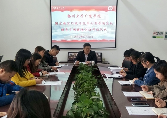 11月18日,第七届普通高等学校辅导员专题网络培训班开班仪式在文体馆S410举行。院党委副书记虞强出席仪式并发表讲话。院学工处(团委)处长(书记)徐杰主持开班仪式。网络培训班23名辅导员学员参加了仪式。