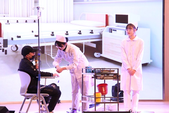 最吸人眼球的第三环节中,各参赛队伍更是活力四射,动感酷炫,以歌舞、情景剧、朗诵、快闪等多元形式,充分展示当代大学生蓬勃向上的精神风貌,增强团支部的凝聚力和向心力。其中,会计81801团支部别出心裁,自编一曲《会计DISCO》,将专业特色表现得淋漓尽致;文秘81801班团支部集舞蹈、书法、古筝、二胡为一体,动静结合、美轮美奂完美演绎了中国传统文化艺术的精粹护理81801团支部以幽默情景剧讲述男友装病求护士女友关注的故事,展现了广大护理工作者立足平凡岗位,成就健康事业的无私形象。活动现场高潮迭起、精彩不断,赢得广大观众的热烈掌声。