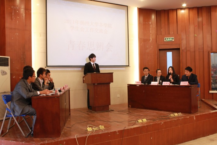 11月23日下午,由扬州大学学生会主办,我院学生会承办的“2011年扬州大学各学院学生会工作交流会”在路南校区报告厅成功举办。院团委副书记张茜老师,校学生会主席团代表,扬州大学27个学院的学生会主席、代表出席了此次交流会。