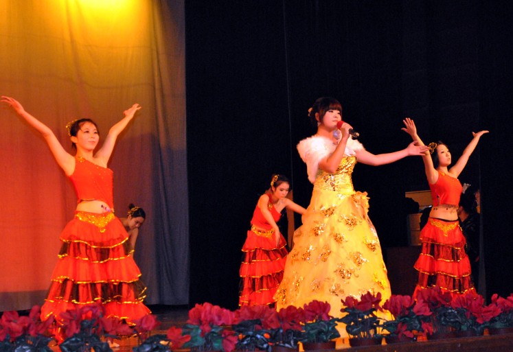 12月7日晚,由我院团委主办,艺术团承办的2011级新生才艺汇报演出在荷花池校区大学生活动中心举行。院党委副书记陈俊老师,副院长杨忠清老师,文法系主任、党总支书记顾瑞漒老师,旅游与艺术系主任、党总支书记姜继红老师,机械电子工程系副主任、副总支书记姚蔚老师,学工办主任、院团委书记周超老师,团委副书记张茜老师等莅临现场观看演出。