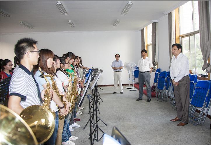2012年5月9日下午,校党委副书记刘延庆一行来到路北校区看望并慰问了为迎接校庆而加紧排练的院铜管乐队。
