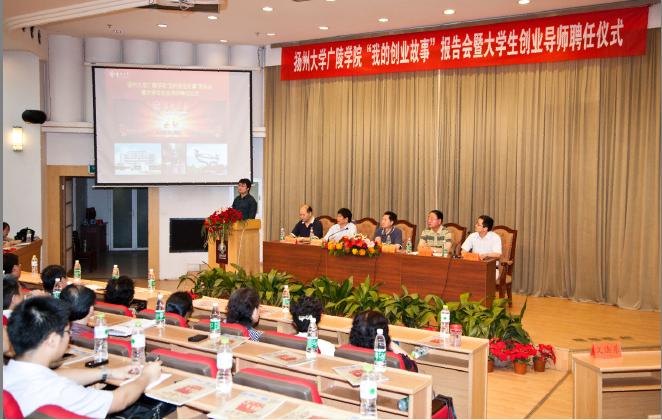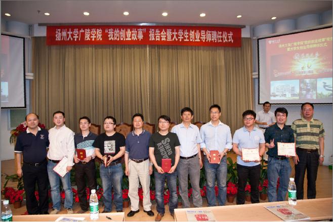 在我校建校110周年、在扬办学60周年、合并办学20周年之际,为献礼校庆,展现我院创业风采,5月18日下午,我院在荷花池校区逸夫图书馆报告厅召开“我的创业故事”报告会暨大学生创业导师聘任仪式。院长陈小兵教授,院党委书记陈晓明教授,副院长杨忠清老师、陈金刚老师,省内40位优秀校友,学院各办负责人,各系党总支书记、主任,教师以及学生代表参加了仪式。仪式由学工办主任、团委书记周超老师主持。
