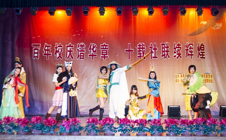 活动以院社联的宣传片开场,以别样的形式记录了院社团联合会的成长发展,吸引了在场同学的目光。晚会的第一阶段表彰了2011—2012学年十佳社团、优秀社团活动、社联优秀干部、社团优秀干部等先进集体和个人。在晚会开场合唱《朋友》的节目中,团委副书记张茜老师和团委周晓进老师的加入,为合唱增添了一抹亮色。凝聚的声音表达了对即将卸任的社联主席团成员们的送别与祝愿。接下来各个社团纷纷亮相,给大家带来了精彩的表演。轮滑社的动感滑行、吉他社的深情演唱等,一个个精心纷呈的节目让现场高潮迭起,而墨染枫华古风社的歌舞短剧《画壁》尤是别具特色,古风古韵的歌曲和精湛的二胡弹奏带领同学们“穿越”汉代,领略中华文化的神奇瑰丽,给在场同学留下深刻印象。活动期间,同学积极踊跃的参入互动环节,并用“人人墙”表达自己对晚会的祝福与喜爱。