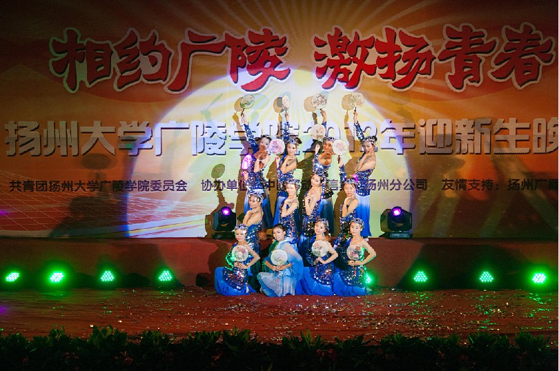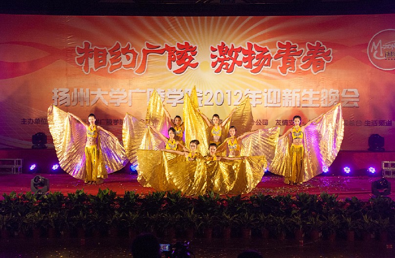 9月28日晚,荷花池校区体育馆内灯光璀璨、鼓声隆隆、歌声飞扬、掌声雷动,由共青团扬州大学广陵学院委员会主办、中国移动通信集团扬州分公司协办的“相约广陵激扬青春”扬州大学广陵学院2012年迎新生晚会在这里隆重举行。校党委副书记、副校长芮鸿岩教授、校党委宣传部部长薛小平老师、校党委学工部部长张信华老师、校团委书记费坚老师、广陵学院院长陈小兵教授、广陵学院党委书记陈晓明教授等受邀出席晚会现场。他们与我院2754名新生及班主任们共享了一场视觉听觉大餐。