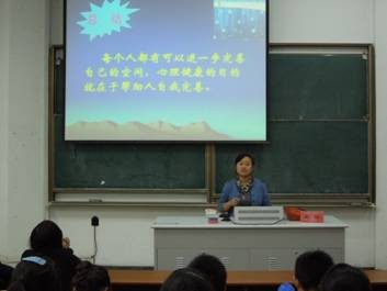 11月2日晚,由我院学生工作办公室主办,院心理健康教育协会组织部承办的“2012级心理委员培训班”在路南校区25号楼110教室举行。校心理中心委员周敏老师担任主讲。