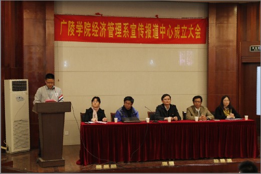 11月7日下午,我院经管系宣传报道中心成立大会在路南校区报告厅成功召开。院学工办主任、团委书记周超老师,经管系肖俊峰老师、张晖老师、胡泊老师均受邀出席本次大会,大会还特邀我校新闻与传媒学院蔡之国教授作为嘉宾。
