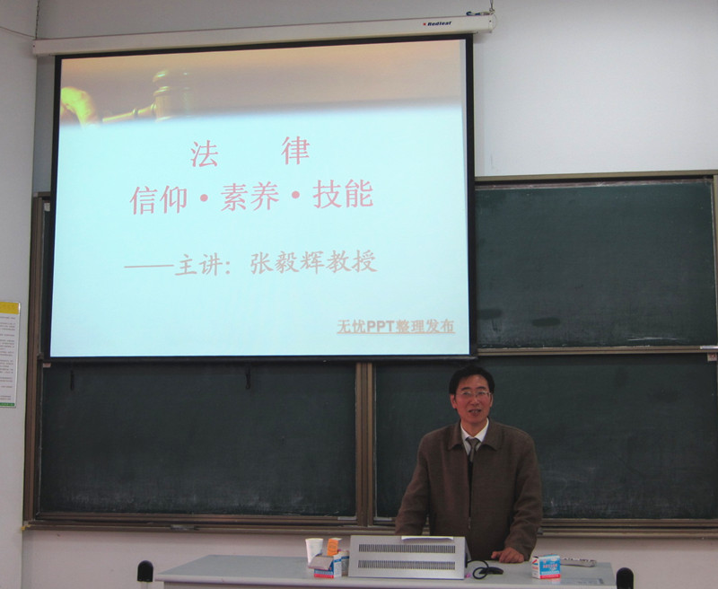 顾瑞漒老师首先向大家介绍:张教授是一名优秀的婚姻法专家,他被誉为扬州大学最关心学生司法考试的老师。在大家崇敬的目光和热烈的掌声中,张教授走上了讲台。讲座以法律为中心,以“信仰,素质与技能”为主题,旨在增强同学们的法律内涵与素养。张教授指出作为一个法律人,必须要有对法律的信仰;“钓鱼岛事件,激起了大家的爱国热情,却也发生了一系列盲目的违法暴力行为,而究其原因,就是法律信仰的缺乏。”那么,如何才能拥有法律信仰呢?张教授从两个方面回答了这个问题,首先是有为国爱民的抱负,其次是要有个人正确向上的品格及公正的观念。论及素养问题,张教授认为法律人所需要的素养主要有科学文化素养、专业素养和心理素养,其中心理素养是关键的一环。张教授用“压力山大”来形容现代人的生活状态,他表示,要想提高心里修养,必须做到以下几点:一是有积极的精神状态,二是有坚强的意志品质,三是客观的自我定位,四是科学饿自我调整。最后,张教授和大家探讨了作为一个法律人所需要的技能,这些技能包括阅读理解、分析研究、口头表达、写作表达、写作与制作、沟通交流等。