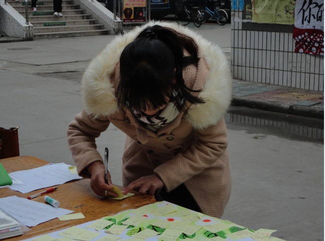 11月22日中午,由经管系主办的“寄语十八大”活动在江阳路南、北两校区食堂门口顺利开展,此次活动吸引了经管系两百多位学生的积极参与。