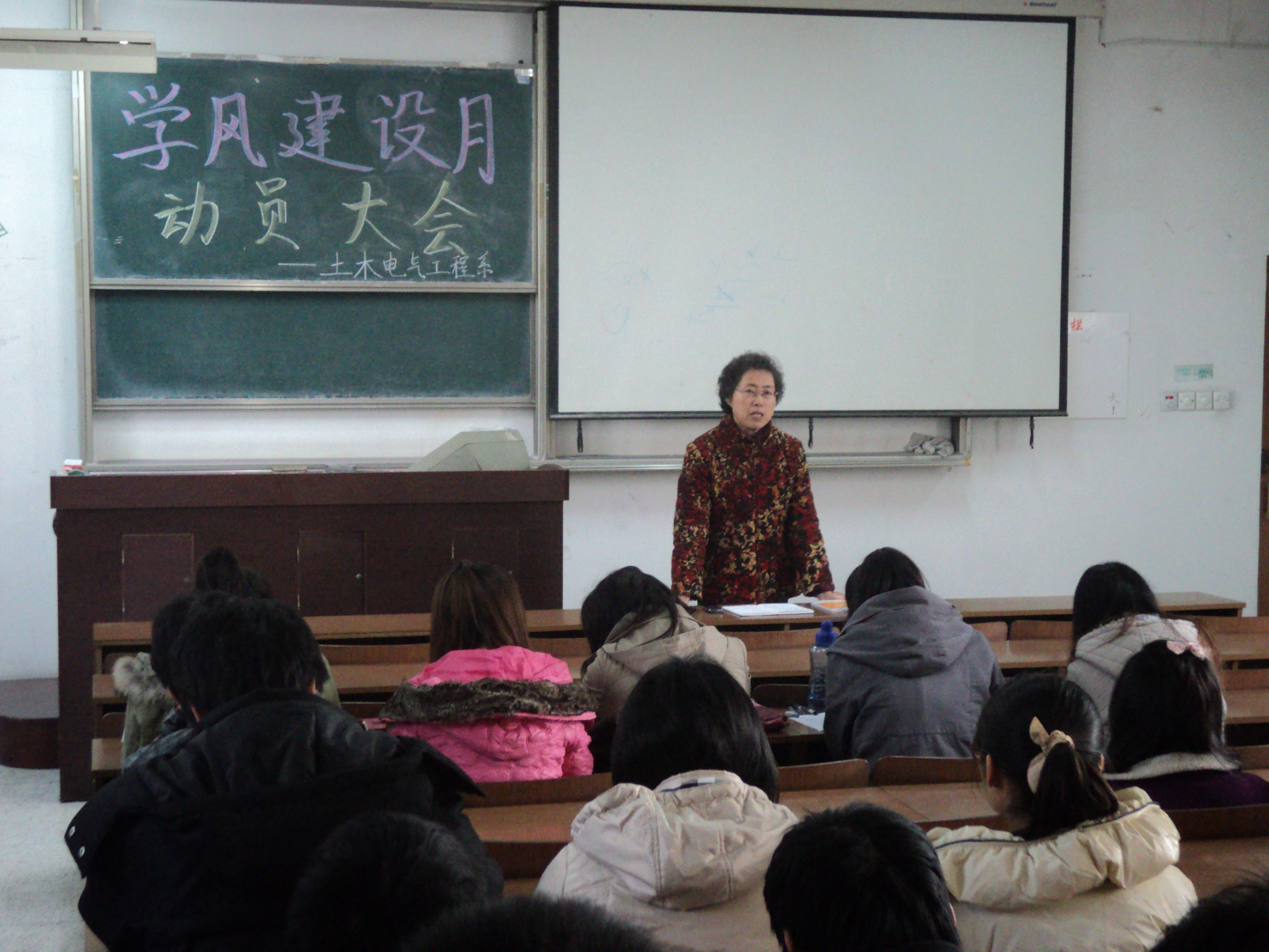 近日,土电系分别在路南、路北校区召开了学风建设月动员大会。在会上,系党总支书记、主任姚玖珊老师向同学们通报了期中教育检查的结果,针对这半学期出现的一些问题,向同学们提出了要求。并向同学们介绍了我系将在12月开展“学风建设月”活动,包括向任课老师发放“考勤协助卡”、举办优秀学生学习经验交流会、优良学风班申报和开展一系列的讲座活动等。
