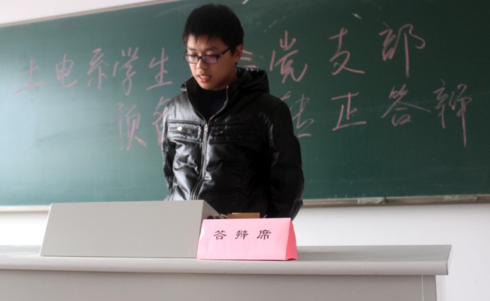 答辩会中,预备党员就预备期中的表现进行了个人陈述,并接受了答辩小组就党章、党员基本知识、如何对待并正确处理当前大学生党员中的不良现象等问题作了自己的看法和建议。与会杨卫琴老师就学生党员要不断加强党的理论知识学习,提高自身党员修养,树立正确的价值观,时刻保持党员的先进性等方面对全体党员提出了要求。