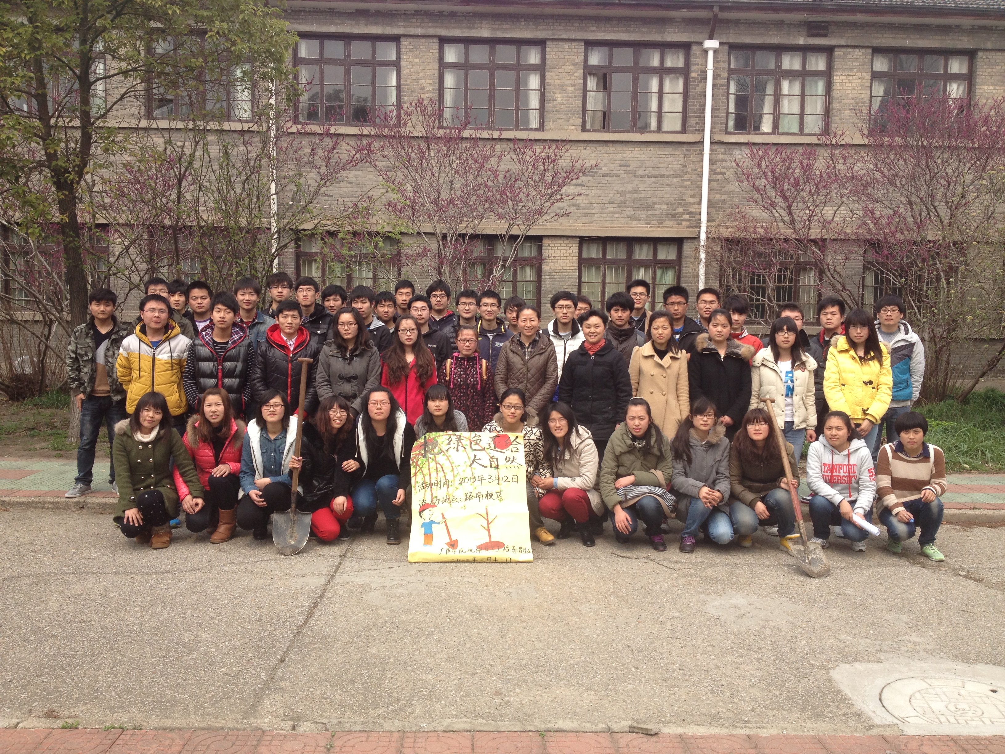 2013年3月12日下午,机电系学生会组织同学们在路北校区一块空地上举办了植树活动,同学们踊跃地加入到种树行列中来,为校园的将来增添一片绿荫。高建和主任,姚蔚主任,花齐芹主任参加了此次活动。