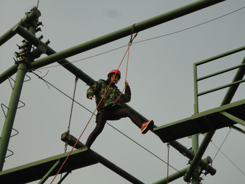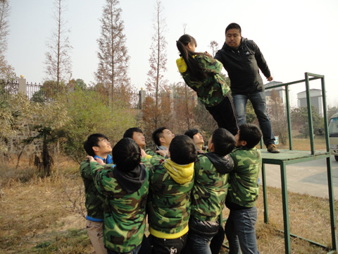 清晨七点,在蒙蒙泛亮的天色中,本次素质拓展活动的成员踏上了前往目的地仪征国防营的客车,开始一天的培训之旅。到达训练场,教官以几个有趣的小测试开场。在教官的带领下,团队65人有序分为三小组,进行了“信任背摔”、“空中断桥”和“生死电网”三个项目的培训。这三个项目分别考验了每一个团队相互间的信任,每一个队员的个人勇气,每一个团队组员之间的通力合作。在培训中,队员们深刻体会到了团结及队员之间相互信任的重要性。在加油与欢笑声中,三队65人成功完成了所有项目的测试,也从中得到领悟由此联想到学生会的工作也需要大家的通力协作与彼此的信任。