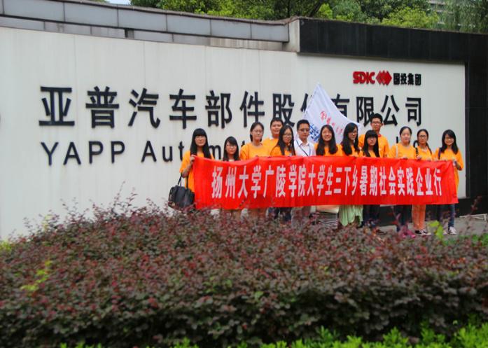 随着时代的发展,汽车产业愈发扮演着一个重要的角色,为了了解关于汽车的知识,更加全面地认识汽车行业,我院“赴开发区企业调研实践团”于7月3日上午前往扬州亚普汽车部件股份有限公司进行了参观调研。