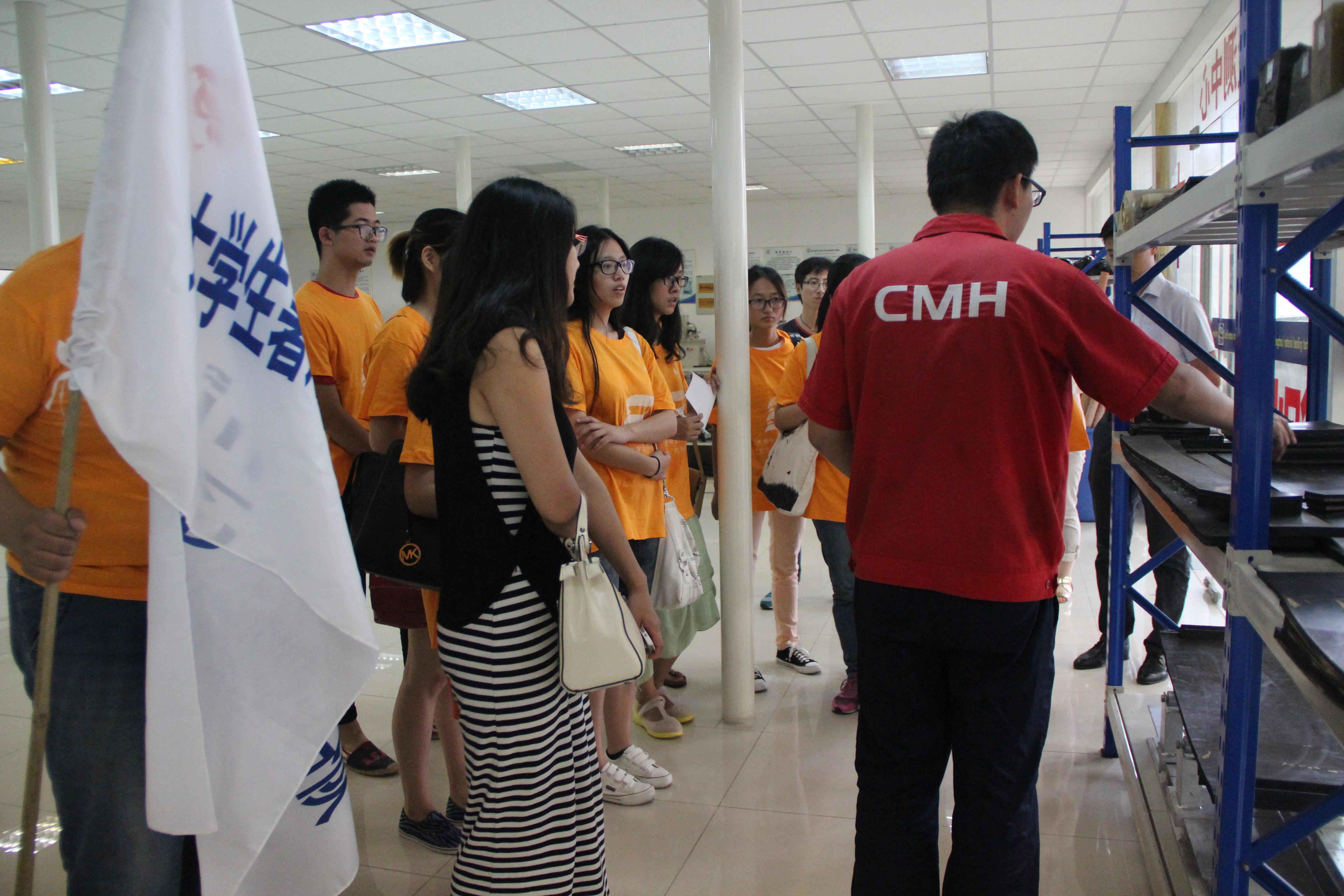 7月3日下午,小分队全体人员到达指定企业,在工作人员的带领下开始参观。同学们首先来到了检测中心,在参观过程中,工作人员介绍了输送带等高分子材料的检测工艺,并热情地向同学们展示了钢丝绳芯胶带渗透性实验机、输送带表面电阻仪等各项检测仪器,同学们对此都表现出很大的兴趣。接着,同学们来到了生产车间,观察了输送带生产的全过程,对高分子材料的生产工艺和企业的工作环境都有了更深的了解。在密封件车间里,工作人员向我们介绍道:“如今的液压支架都采用复合材料,具有高附加值,同时也具有很大的风险,这就要求生产时要认真负责,不能出现一丝马虎。”