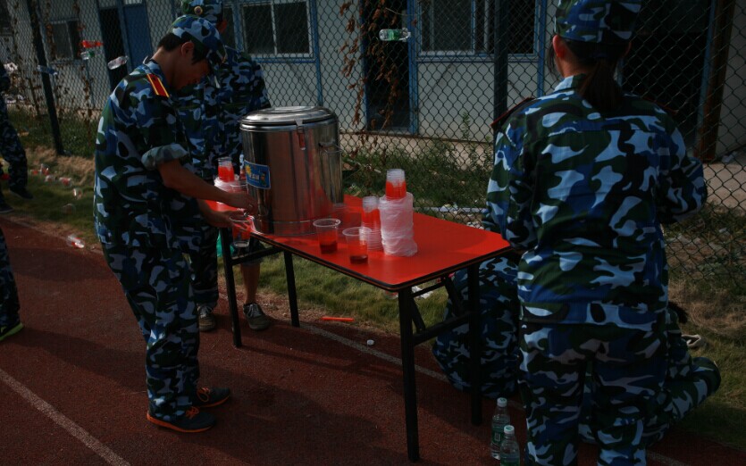 为了让新生们感受到学院的关怀,更好地投入到军训活动中,院学生会与院社联会分别在路南校区和荷花池校区设置了供水点,供军训的新生饮用,并且派出成员进行供水工作。今天的太阳十分耀眼,军训的新生们都出了不少汗,“训练是辛苦的,这个供水点的设置却让我倍感温暖,不仅给我们提供了方便,使我们及时的补充水分,也省去了买水所花的时间和金钱。”文秘81402班的姜钰说道。