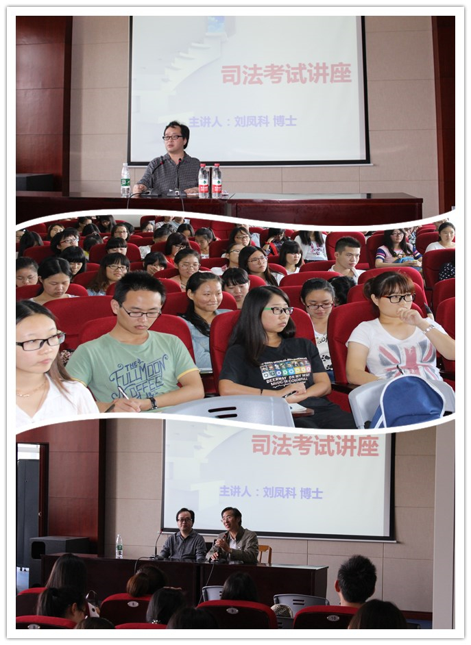 刘凤科老师是清华大学法学院博士,被称为“刑法第一人”。在讲座中,他从专业的角度,剖析了近几年司法考试的趋势,为广大学生指点迷津,并鼓励大家勇敢面对司考。刘博士幽默诙谐的语言和亲切睿智的演讲风格,让报告厅传来阵阵欢声笑语。
