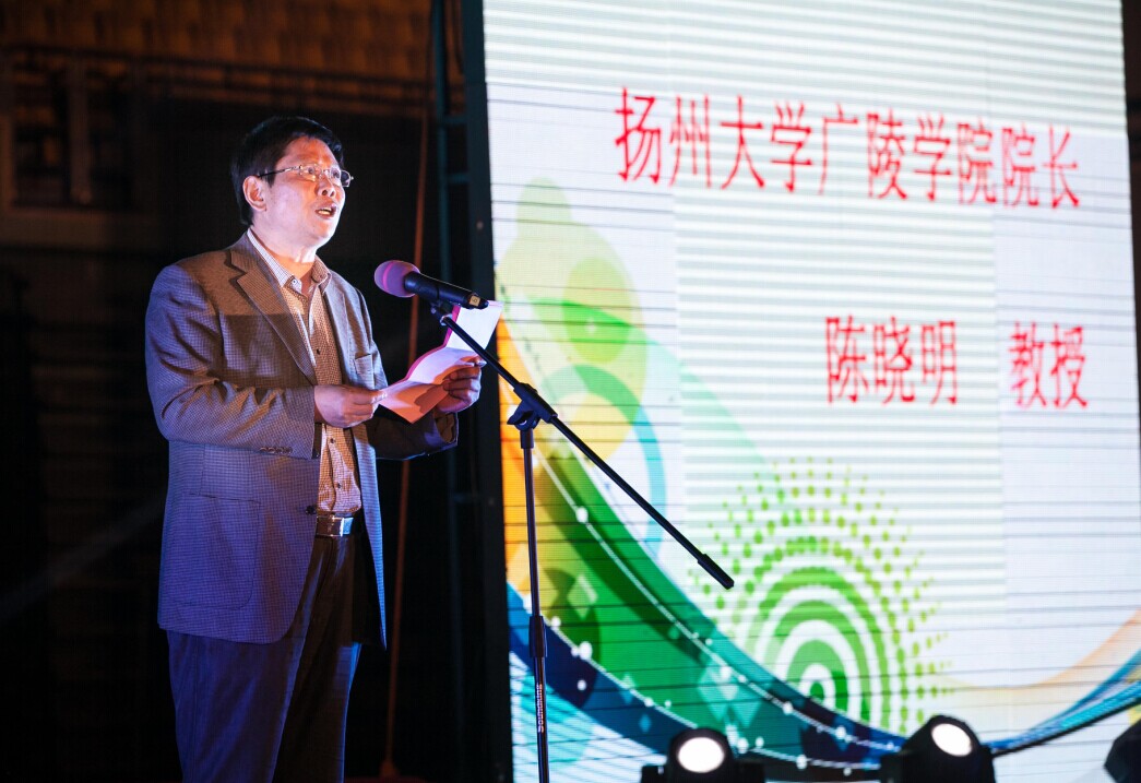 陈晓明院长在晚会开始前向新生表示了欢迎,他呼吁新生:“在这梦想开始的地方一步一步、脚踏实地我们自己的路,开始我们新的方向,美好的未来!”暖场倒计时在爱乐队的歌曲串烧中为晚会拉开了序幕。学院铜管乐队的乐声时而如悠扬,时而湍急,萨克斯婉转空灵的乐声响起时,全场都发出了雷鸣般的掌声,新生们好似领略到了高雅艺术的魅力!广陵学院的视频寄语《广陵人对我说》和《广陵欢迎你》用温情的手法向新生传达了学姐学长对他们的欢迎,展现了学院独特的人文气息,将全场带入了高潮。