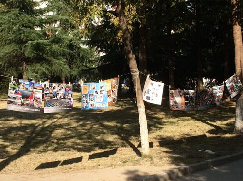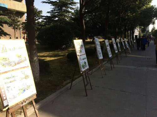 11月13日上午9点至下午5点,广陵学院旅艺系团总支携手“都市牧歌”环艺工作室在路北校区大学生活动中心门前举办“笔墨传校园”全国高校手绘艺术设计画展交流会。