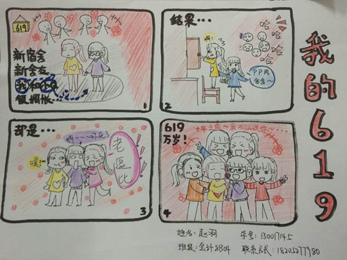 在本次的评比活动中,各位评委对每幅作品都进行了仔细的筛选与评定。最后在评委的一致认可下几幅优秀的漫画作品脱颖而出,分别为工商81401项俊琦的《大学的你》,工商81401班张文雪的《笑对人生》,工商81401张敏杰的《微笑》,会计81304赵羽的《我的619》,以及环工81401朱一凡的《爱》等。