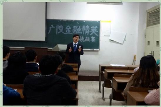 本次指导活动有幸邀请华泰证劵公司(扬州地区)曹明祥经理作为本次大赛的指导教师。为参赛选手讲解证券股票投资的技巧,并且策划本次大赛的最佳应战模式。