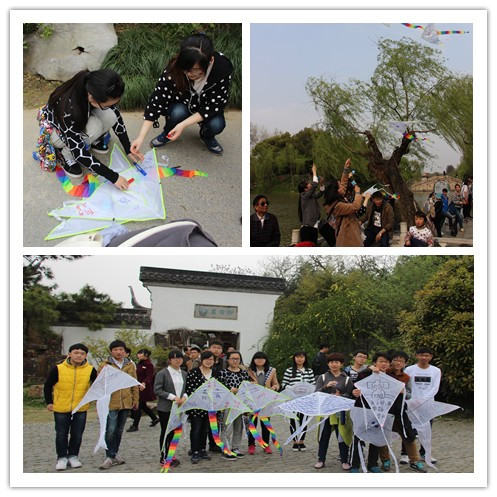当天,同学们踏着欢快的步伐来到了蜀岗风景区,蜿蜒曲折的道路,波光粼粼的湖面,两岸林木扶疏,园林建筑古朴多姿,煞是迷人。在一片比较空旷的地带。同学们先将风筝进行组装,再用画笔在风筝上一笔一划的写着自己的梦想、画着自己幻想的未来。看着自己亲手组装的风筝在蓝天自由驰骋,所有人的脸上露出了无尽的喜悦。同学们满眼都是对未来的憧憬,对梦想的期盼。