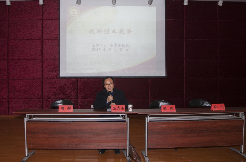 开班仪式后,扬州天龙职业培训学校校长、扬州市中小企业协会会长汤志荣为大家做了“我的创业故事”报告。汤校长通过讲述他自己的创业故事为在场的有志于创业的学生指明了方向,更鼓舞了广大学生坚定创业的信心,激励他们勇于创新创业,实现自己的人生理想和价值。