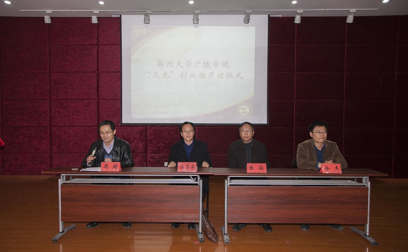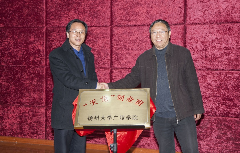 仪式上,院党委陈俊副书记和扬州天龙职业培训学校校长汤志荣先生为“天龙”创业班揭牌。随后,院团委周超书记从“天龙”创业班的培养目的、课时设置以及“三段式”培养步骤等方面介绍了“天龙”创业班培养方案。“天龙”创业班的设立主要是为进一步推进我院大学生创业工作,丰富大学生创业知识,支持大学生自主创业,解决学生就业难、创业难的问题。