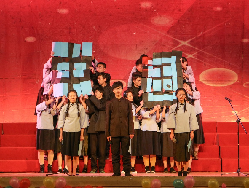 经过前期初赛,共有9个班级进入当晚的决赛。参赛的同学们表现精彩,形式多样。他们以或激昂、或深沉,或热情洋溢、或质朴真诚的语调和感情为现场观众再现了中国抗战历史的苦难与辉煌、悲壮与荣耀。来自日语81401的同学们 带来的《振兴中华,心向往之》的精彩朗诵让现场师生思绪深沉又斗志昂扬,而广电81502表演的《青春中国》以激昂的语调再现了一个充满青春、腾飞的中国风采。此外多才多艺的文法系同学还带来精彩的话剧表演《抗日烽火》让现场观众心生赞叹、不由鼓起掌来。本次比赛还邀请了田野老师担任特别演出嘉宾,田野老师动情的演绎了经典红歌《弹起我心爱的土琵琶》。在本场比赛过程中,不管是台上的参赛班级还是台下的观众,都保持着高昂的兴致和饱满的热情。“听台上同学们深情的朗诵,像是重温了历史,深刻感受到抗战胜利的来之不易,我们应当谨记历史教训,发扬继承先烈们的革命精神,做有担当的大学生。”来自广电81502班的张志月同学说道。